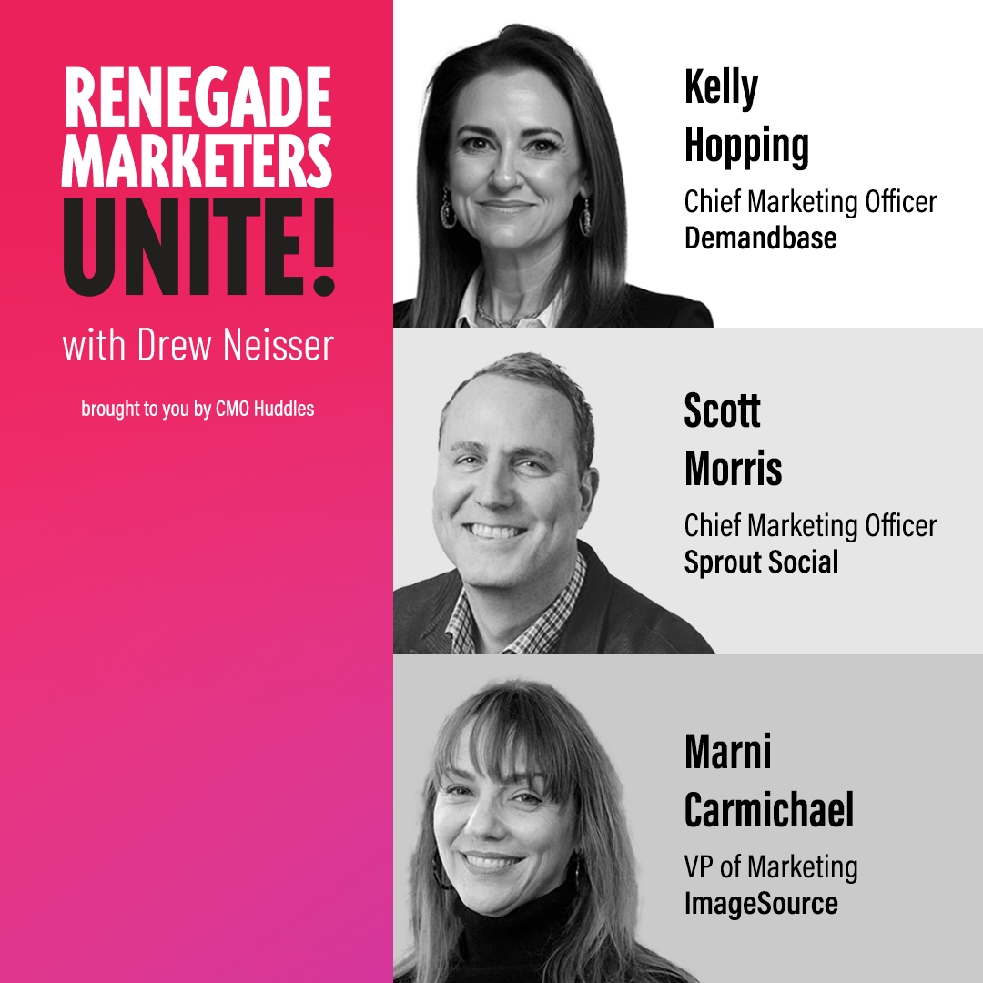 You're about to listen to a recording from CMO Huddle Studio, our live show featuring the flocking awesome B2B marketing leaders of CMO Huddles. In this episode, Scott Morris, CMO of Sprout Social, Kelly Hopping, CMO of Demandbase, and Marni Carmichael, CMO of Imagesource, share how they build integrated campaigns that connect brand and demand, keep teams aligned across channels, and create a through line that buyers recognize and that drives momentum into pipeline. It's a lot and by the way, if you're a B2B CMO, you can meet Scott at the CMO Super Huddle in Palo Alto, California on November 6th and 7th. Be sure to check out CMOHuddles.com for more on that. And if you like what you hear on this show, please subscribe to the podcast and leave a review. You'll be supporting our quest to be the number one B2B marketing podcast. All right, let's dive in.